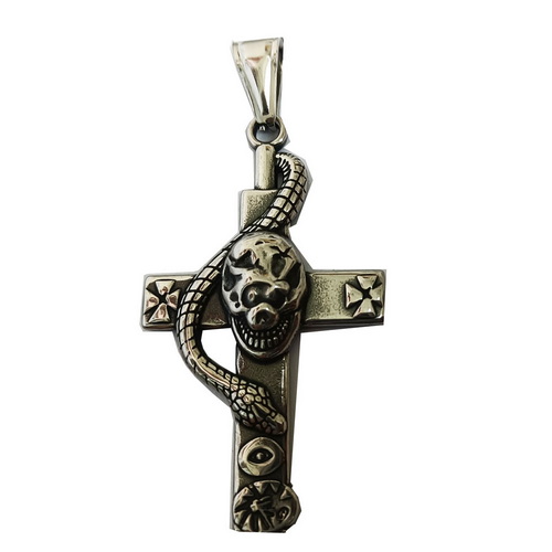 FSP18W49 Stainless Steel Jewelry Snake Cross Skull Pendant